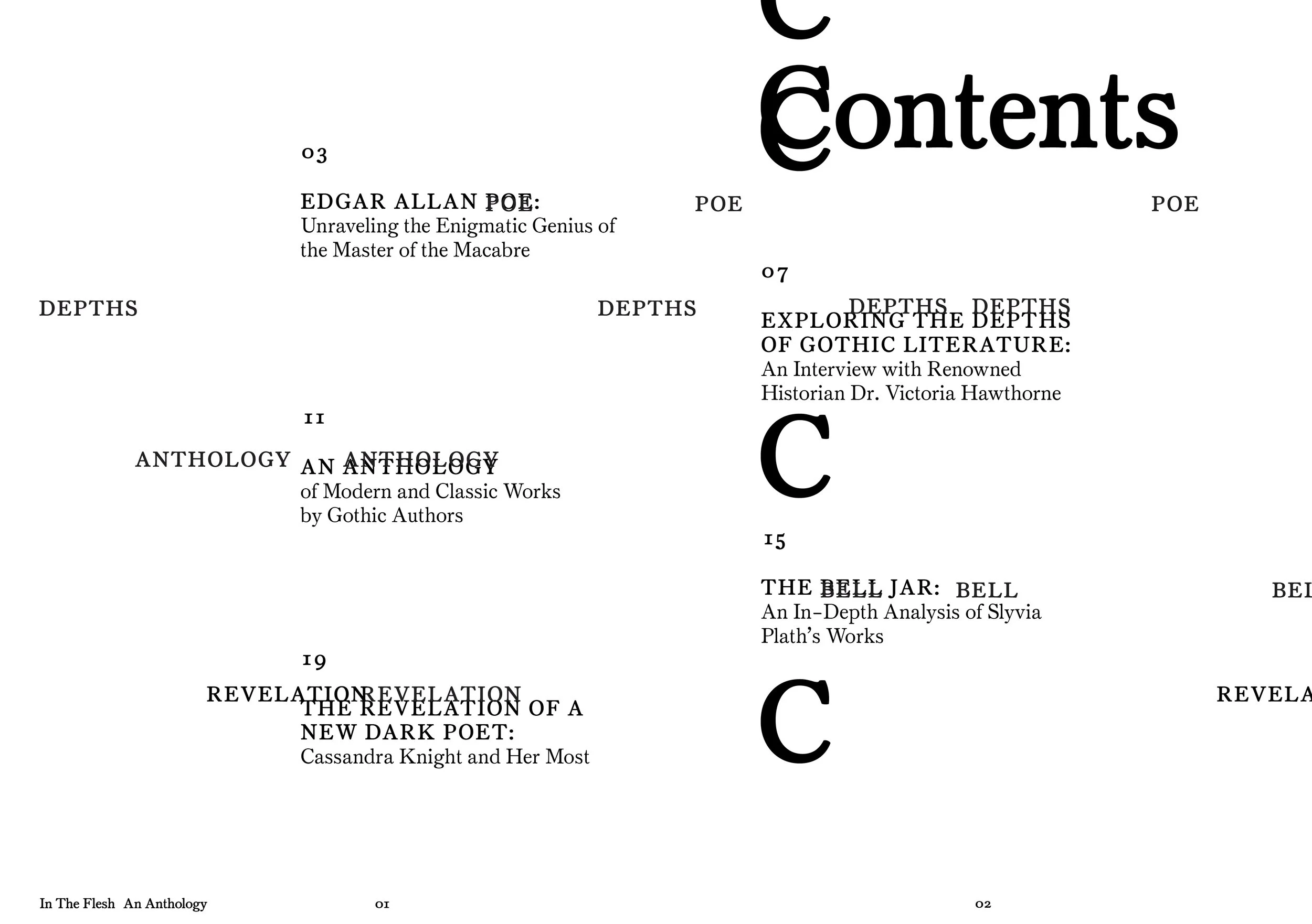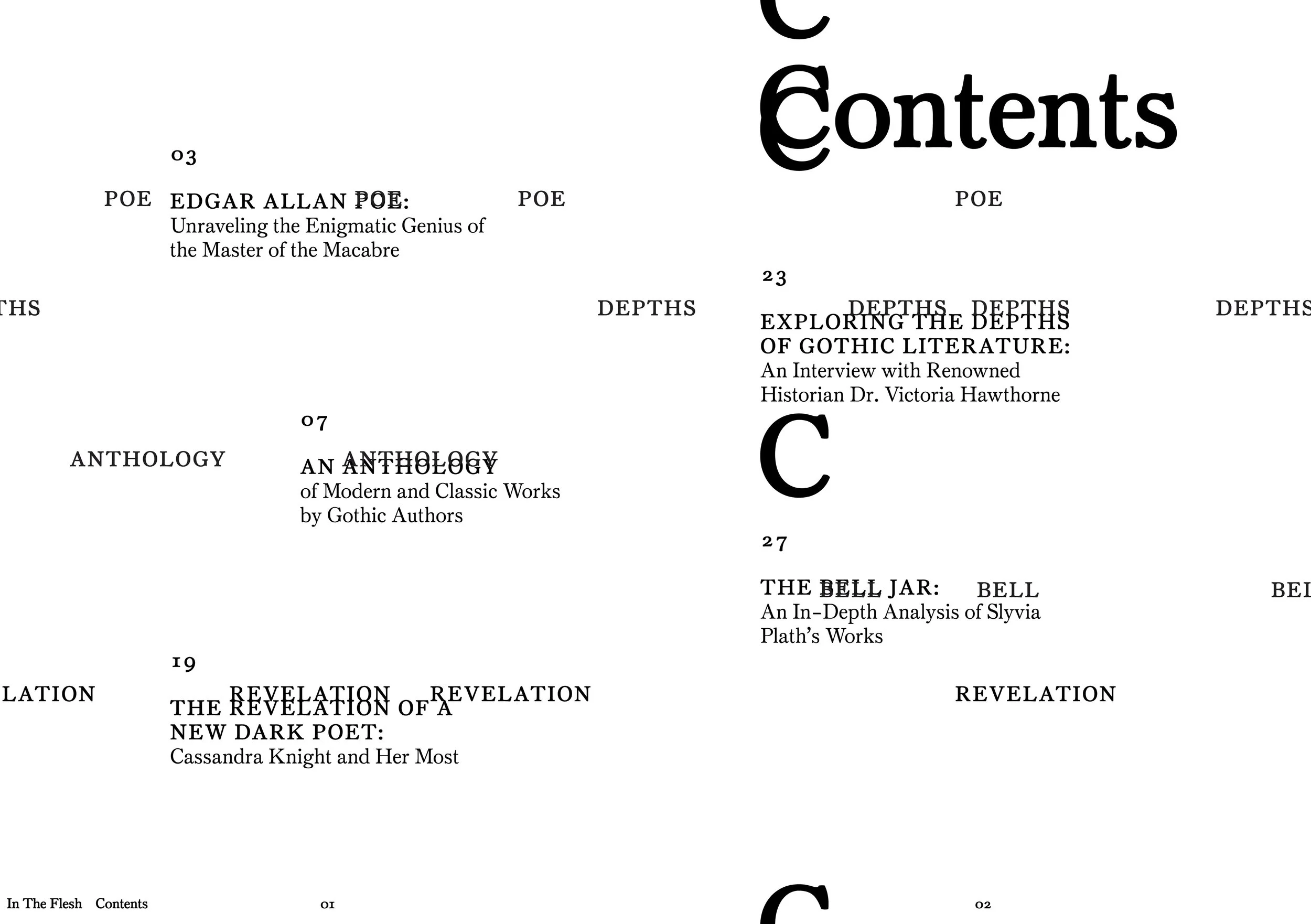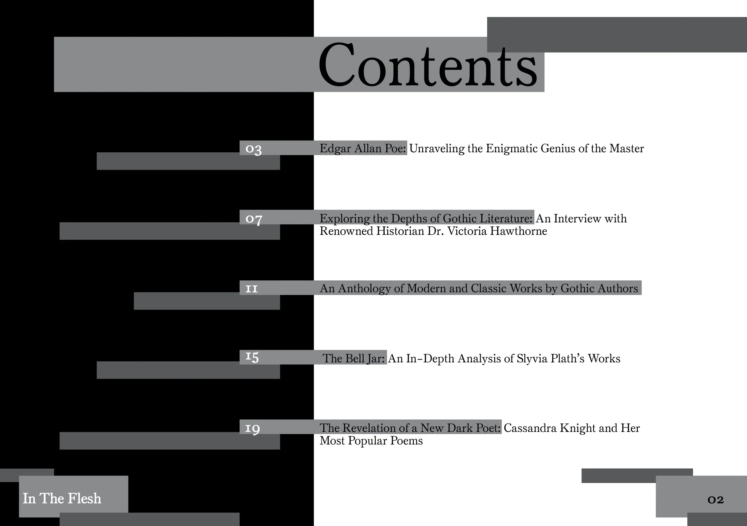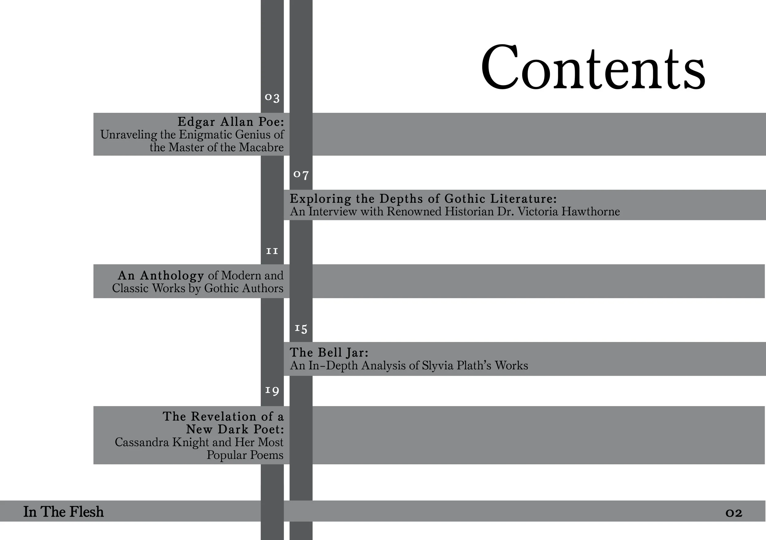In The Flesh is a compendium of gothic works that strives to reveal the grotesque reality of the human condition to its’ readers.