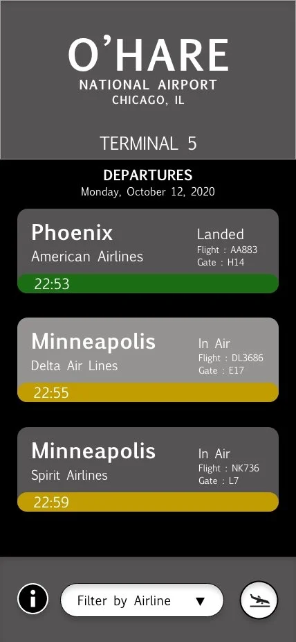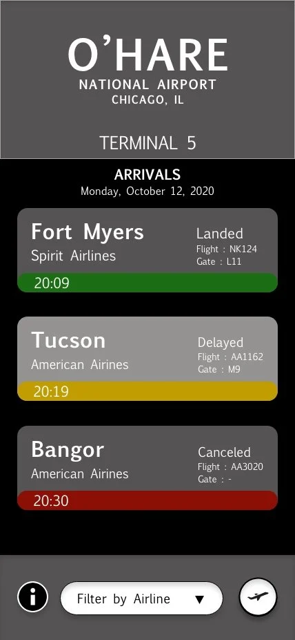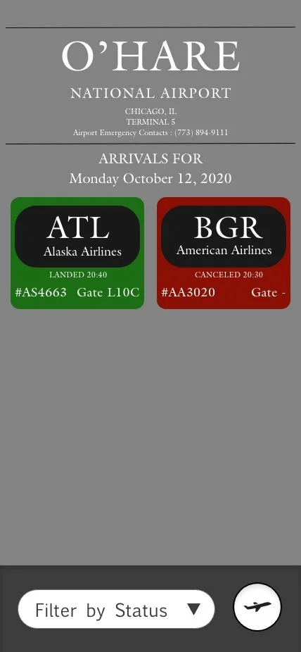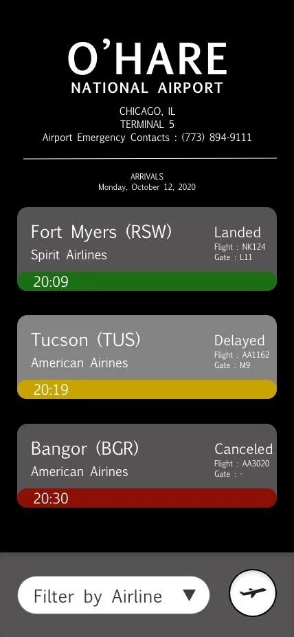 An app intended to allow users to easily navigate and retrieve information about flights at the O’Hare National Airport.